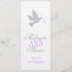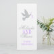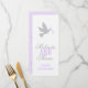 Porta simples de cinza de dois lados com duas fitas púrpuras no menu jantar recepção de casamento. Desenvolvido exclusivamente pela Sarah Trett.
