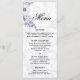 Este lindo cardápio de casamento tem uma design muito elegante de cinza esmaecida, e damasco branco no fundo com um belo arranjo floral em roxo com bagas e flores no canto superior esquerdo.