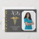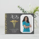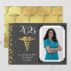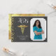 Celebre o novo doutor de formando de medicina da faculdade de medicina com este anúncio de graduação de ouro e Cinza caducius! Elegante com uma borda de fotos vintage e sotaques de confete dourados! Perfeito para quem se forma como md ou faz doutorado!