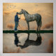 Cavalo De cinza E OTTB, Poster. Arte Digital "A afluência". O cavalo cinza fica com o seu noivo num campo noturno ao pôr do sol. Design funciona para amantes de cavalos, fazendas de cavalos, corridas, esportes de equídeos e também cuidados pós-cirúrgicos. Faça o seu. Totalmente personalizável.