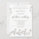 Convites elegantes para casamento com flores de cinza e texto personalizado, quando o casal hospeda suas famílias, impressos em fundo branco