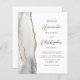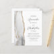 A borda esquerda deste elegante convite de casamento moderno apresenta uma cinza e uma aquarela branca, aparada com falsa brilho dourado. O texto personalizável combina o script de cinza de carvão e as fontes sans serif em um fundo branco. O verso fornece espaço para detalhes do casamento em um fundo branco sólido, junto com um código QR que os convidados podem digitalizar para visitar seu site e RSVP, o que economiza o custo de imprimir e enviar cartões RSVP separados.