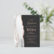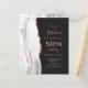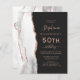 A borda esquerda deste elegante e moderno convite de aniversário 50º apresenta uma cinza e uma aquarela branca, além de borda cortada com cintilação falsa rosa. O texto personalizável combina manuscritos rosa, copperplate e fontes itálicas em um fundo preto de ardósia. O lado inverso apresenta um design agate correspondente.