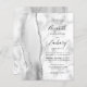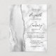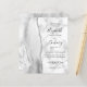 A borda esquerda deste elegante convite de casamento moderno apresenta uma cinza e uma aquarela branca, aparada com falso brilho prateado. O texto personalizável combina manuscrito preto, fontes em copperplate e itálico em uma cinza e fundo de mármore branco. O verso apresenta uma cinza e um design prateado.