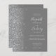 A borda esquerda deste elegante convite de casamento moderno apresenta uma borda falsa de prata. O texto personalizável combina a escrita manual de cinzas prateadas pálidas, fontes copperplate e itálico em um fundo de cinza. O verso apresenta uma cinza e uma design prateada correspondentes.