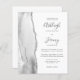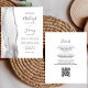 Economize o custo de imprimir e enviar cartões RSVP separados com este elegante convite de casamento de orçamento integral. A borda esquerda apresenta uma cinza e uma aquarela branca com borda agitada, aparada com cintilação fina prateada. O texto personalizável combina a escrita manual de cinzas de carvão, as fontes em copperplate e itálico em um fundo branco. O verso oferece espaço para detalhes do casamento, junto com um código QR que os convidados podem digitalizar para visitar seu site e RSVP.
