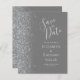 A borda esquerda deste elegante casamento moderno salve o cartão de data apresenta uma borda cintilante. O texto personalizável combina a escrita manual de cinzas prateadas, fontes copperplate e itálico em um fundo de cinza média. O verso apresenta uma cinza e uma design prateada correspondentes.