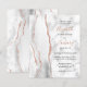 A borda esquerda deste elegante convite de casamento moderno apresenta uma cinza e uma aquarela branca, aparada com falso brilho de rosa. O texto personalizável combina manuscrito empoeirado de rosa com fontes pretas e itálicas em uma cinza e fundo branco de mármore. O verso apresenta uma cinza correspondente, design branco e rosa dourado.