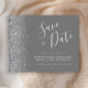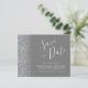Este elegante orçamento salve a data card apresenta uma borda cintilante prateada. O texto personalizável combina o script de escrita manual de cinzas prateadas, fontes copperplate e itálico em um fundo de cinza. O verso apresenta uma cinza e uma design prateada correspondentes.