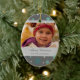 Ornamento da avó do Feliz Natal customizável com sua própria foto de família em cinzas de carvão vegetal escuras elegantes, no teste padrão azul e branco da cerceta de turquesa dos flocos de neve. Um presente à moda do Natal para a avó esta época natalícia.