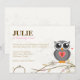 Cinza De Coruja Primeiro Convite de aniversário. Uma coruja de cinzas bonitinha e chorona com um coração sentado no topo floresce galhos e folhas. Coruja segura o número um para mostrar a idade da aniversariante (o número pode ser alterado para qualquer ano que você escolher) Um fundo neutro de creme realmente faz não apenas o pop de ilustração de coruja mas também seu texto. Whimsical e fofo, faz a menina perfeita o primeiro convite de aniversário!