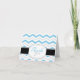 Trendy personalizada obrigado cartas criadas com um padrão moderno de chevron zigzag azul e cinza alternando, "obrigado você" em texto azul e cinza em um quadro branco sobre uma faixa preta, e personalizado na dentro com sua própria mensagem personalizada de gratidão. Você também pode excluir facilmente o texto do modelo de dentro para deixar essas placas vazios para escrever manualmente seus sentimentos de obrigados. Este padrão de na moda e uso de cores torna estas cartas perfeitas para chás de panela e casamentos.