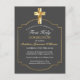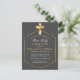 Compartilhe a sua alegria com a família e os amigos na Santa Comunhão das 1ruas do seu filho quando enviar estas Cinzas Elegantes e os Cartões-postais do Primeiro Convite à Comunidade Dourado. Personalize estes Cartões-postais da Comunidade Sagrados Convidam com o nome, a localização, a hora, a data e o local da recepção. Este cartão postal de convite da Comunidade apresenta uma cinza escura suave e elegante na frente e um lugar para colocar seu nome e endereço de retorno na parte de trás. Uma bela cruz dourada e borda dourada encerra o belo roteiro. Perfeito para a comunhão sagrada de um menino ou para a comunhão sagrada de uma menina.