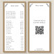 Informe aos seus clientes a lista de menus e os preços com esta placa de rack Kraft & Rustic Price List com ornamentos de Cinza e textos personalizáveis. Você pode adicionar uma mensagem personalizada no verso e um Código QR!