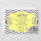 Convite neutro para Chás de fraldas com fundo de fêmur de cinza e quadro amarelo. Chá de fraldas Invite apresenta um elefante cinza com design cardíaco fofo. Mamãe ficará entusiasmada com este convite para chá para uma garota ou um garoto. Personalize com seus detalhes.