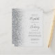 A borda esquerda deste elegante convite de casamento moderno apresenta uma borda falsa de prata. O texto personalizável combina a escrita manual de cinzas de carvão, as fontes em copperplate e itálico em um fundo de cinza pálido. O verso apresenta uma cinza e uma design prateada correspondentes.