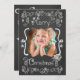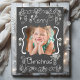 Um quadro de discussão tem um plano de fundo com lindos pergaminhos e estrelas de cinzas e texto branco que diz "Feliz Natal" na frente e "Que todos os seus dias sejam felizes e brilhantes" na parte de trás. Este belo Cartões de foto de Natal de feriado personalizado tem vários ornamentos de estrelas, um pássaro em um design de ninho, e áreas que você pode adicionar facilmente seu nome, o ano atual e a foto! Fotografia © Storytree Studios, Stanford, CA