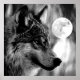 Cinza Wolf Portrait & Full Moon - Ossos Azuis Face de Lobo Cinza - Arte Colegial Pop - Animais Selvagens - Mundo de Animais Extremos - Lobos Imagens Informáticas - Estilo Digital de BD Arte Animal