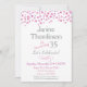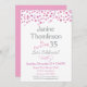 Um belo convite de aniversário em cor-de-rosa e cinzas, com confete branco rosa. Este convite de aniversário divertido é perfeito para qualquer idade, incluindo 10º, 11, 12, 13, 14, 15, 16º, 17º, 18º 20 21rua 35º 45º 45º 55º 60º 65º, 65º 70 75º 80 30 85º 90 95º e 100 e mais.