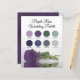 Estas cartas de paleta colorida foram concebidas para elogiar a nossa suíte de casamento Ametist Purple Rosa. A placa inclui amostras coloridas da imagem, assim como tons de marinho, verde-sábio e cinzas que complementarão o trabalho de arte. Perfeito para ajudar suas madrinhas a escolher vestidos de cor adequada.