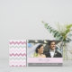 Obrigado de casamento você cartão com fotos em elegante e moderno rosa pincel rosa, cinza e padrão zigzags branco. Uma maneira perfeita para obrigados amigos e família para presentes de casamento e para compartilhar suas fotos de casamento. Disponível em postagem correspondente e muitos outros produtos para o seu casamento.