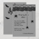 As aranhas de DaTECY penduram de uma fronteira antiga neste convite para "cair para uma mordida". As costas estão decoradas com morcegos em voo. O envelope de coordenação também está disponível.