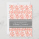 Convites de almoço de noiva em cor-de-pêssego elegante, cor-de-rosa-laranja, cinza e padrão floral clássico branco úmido, chic e feminino, personalizáveis com seus detalhes de chá. Também disponível em cartões de agradecimento e convites para a festa noiva.