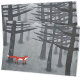 Uma raposa vermelha selvagem se situa entre as árvores de uma floresta escura. Uma pintura paisagística para amantes de animais, natureza e vida selvagem. Arte original de Nic Squirrell.