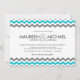 Convites de casamento modernos. Azul aqua tropical, cinzas e branco para casamentos casuais de praia ou de destino. O padrão trendy de impressão zig-zag com uma tipografia ousada e minimalista sans-serif pode ser personalizado como está, ou mover as coisas para criar belos convites para casamento faça-você-mesmo. Veja em todas as opções de papel do barato. Visite nossa loja para ver kits de casamento mais exclusivos em outros tamanhos, cores e estilos.