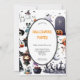 CINZA SCARY AND ORANGE HALLOWEEN PARTITY INVITATION O design apresenta tudo assustador desde um gato preto com morcegos voadores até uma teia de aranha, fantasmas, vassoura-bruxa, crânio e osso, bola de vidro mágico e uma abóbora-a-lanterna em preto, branco, cinzas e cor laranja. É fácil personalizar o texto modelo, e os seus convidados do partido estarão com medo quando receberem estes convites pelo correio!