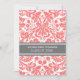 Cartão feito sob encomenda do convite da festa de formatura na cor damasco floral alaranjada do rosa do pêssego brilhante elegante e sofisticado, o cinzento e o branco do vintage clássico. Personalize este cartão do anúncio do formando adicionando o ano de sua graduação e de seus detalhes da festa de formatura.