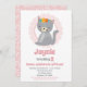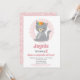 O convite para o aniversário desta menina apresenta a gatinha mais doce de cinzas com flores na cabeça, contra um fundo de couro cabeludo rosa.