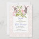 Cinza e fundo cor-de-rosa é a base para esta design Gêmea com um coelho giro em um monte de flores. A redação do Chá de fraldas pode ser facilmente alterada para sua informação.