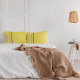 Esta mala-almofada apresenta uma design minimalista com linhas verticais em branco, cinza e preto sobre fundo amarelo. Excelente para quartos contemporâneos. As cores são totalmente personalizáveis clicando-se em Editar design.