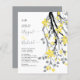 BUDGET Última ramificação de cinzas com flores amarelas iluminando o convite de casamento. Um design para o seu casamento com uma cinza em cascata e um galho preto com flores amarelas. A parte de trás é de cor de cinza.