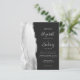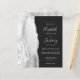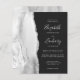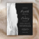 A borda esquerda deste elegante convite de casamento moderno apresenta uma cinza e uma aquarela branca, aparada com falso brilho prateado. O texto personalizável combina escrita manual, placa de impressão e fontes itálicas em cinzas prateadas em um fundo fora do preto. O verso apresenta uma cinza correspondente, design branco e agata prateada.