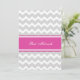 convites de festas do Bat Mitzvah personalizados em elegante cor-de-rosa quente fuchsia, cinzas e chevrons brancos retro zigzags padrão vintage. Adicione seu nome e detalhes da festa para um convite de festas exclusivo e na moda Bat Mitzvah.