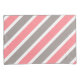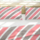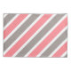 As fronhas modernas para o quarto feminino apresentam um padrão diagonal listrado em vermelho, cinza e branco.