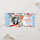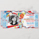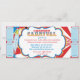 Os palhaços divertidos do circo em alças, fazendo malabarismo e segurando balões temem o cartão de aniversário com a inserção de fotos em azul, vermelho, branco e amarelo com bilhetes de rifa ao lado. Apenas perfurem os lados para uma fácil rasga!