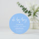 Saia com este convite típico de chá de fraldas azul de bebê. Este convite circular tem uma design minimalista para os pais modernos. Com o seu humilde motif, é perfeito para um cartão de anúncio de um bebê ou para receber uma festa de chá honrando um novo pai.