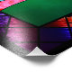 Um design digital de vidro colado no estilo Art Deco popular no século 20. O motif de explosão solar de uso corrente é central, ascensão atrás de uma paisagem verde balanceada por uma árvore de um lado e nuvens e flores do outro. Formas geométricas são usadas para enfatizar a simetria da cena, com a árvore e nuvens feitas de círculos sobrepostos. Vários fractais de cor clara dão textura de "vidro" e interesse. A cena é enquadrada em ferro preto e blocos em forma de diamante fosco com padrões fractais escuros mas vívidos.