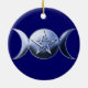 Símbolo triplo da deusa, três fases lunares. Lua cheia com pentagram, enceramento e a lua waning. Azul Mystical, translúcido no preto. Womankind, mãe, donzela e crone. Presente para Wiccans e neo-Pagans.