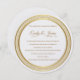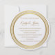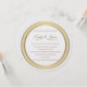 Este convite para o casamento é mostrado em um layout redondo em um fundo branco mostrado em uma opção de papel de Peal Shimmer. Selecione o papel escolhido. Dourado tom com aparência em todos os nomes e texto do Casal de envelope com forma de círculo. Mostrado em Ouro. Personalize este item, retirando o texto do exemplo e colocando suas informações nele. Imagem de ações.