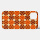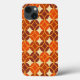 Esta capa de telefone tem um design moderno século médio de círculos abertos em círculos fechados em tons de marrom e ouro num campo de bege.