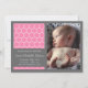 Círculos em Segundo Plano Novos Anúncios de Bebê (Rosa Escuro / Cinza / Branco)...Estes novos anúncios de bebê divertidos, modernos e sofisticados são a forma perfeita de deixar amigos e familiares saberem que seu pequeno pacote de alegria finalmente chegou. Seja um menino ou uma menina, seja um bebê ou gêmeos ou trigêmeos, esses anúncios de bebês são perfeitos. Completamente personalizável... basta adicionar sua foto favorita / fotografia do seu novo bebê e inserir o nome do seu bebê, data de nascimento, peso no momento do nascimento e os nomes da nova mamãe e pai orgulhosa e seus anúncios de bebê estão prontos para serem enviados. Consulte WindyCityStationery.com para obter nossa linha completa de "Círculos em Segundo Plano Novos Anúncios de Bebê" em uma ampla variedade de cores, além de postagens, adesivos, etiquetas e muito mais.