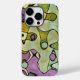 Design começou com vidro manchado. Linhas pretas separam as cores e várias formas e tamanhos girando ao redor. Você não vai perder de encontrar seu telefone. Ver pontos de cor é divertido, zany e único.