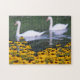Desafie suas habilidades de fazer de quebra-cabeça com esta foto de um par de cisnes no jardim.