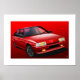 Poster de ilustração de um Citroen BX 16V em vermelho vivo. A BX GTI é uma versão rara e especial do carro da família de hatchback padrão. Projetado e ilustrado por mim mesmo, este design poster de excelente faria um presente ou item de excelente para quaisquer proprietários ou entusiastas deste futuro carro clássico francês.
