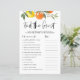 Junte-se aos convidados para encontrar as respostas para as perguntas! | Adicione este cartão de jogo de chá divertido e divertido ao seu evento. Esta placa de jogo personalizável "Find the Guest" apresenta ilustrações de aquarela de limões e laranjas. Personalize adicionando suas perguntas. Este cartão de chá de panela cítrico é perfeito para chás de panela e chás de casamento de verão.