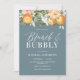 Citrus, laranja + convite de festas de brunch e chá de fraldas borbulhável. Linda folhagem de aquarela, fruta e ilustrações florais. Parte de uma coleção.